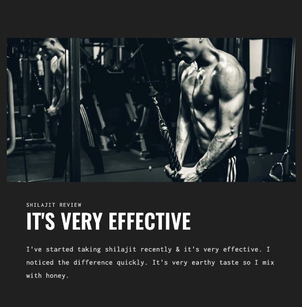 I've started taking shilajit recently & it's very effective. I noticed the difference quickly. It's very earthy taste so I mix with honey.
